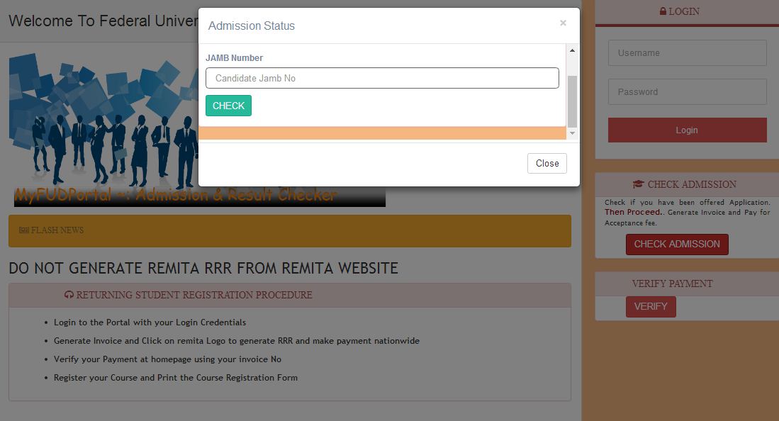 -Visit http://myportal.fud.edu.ng/