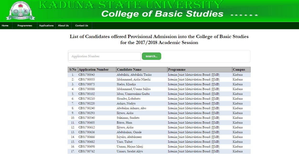 The management of Kaduna State University (KASU) wishes to notify members of the general public and candidates that it has released the names of candidates who applied for admission into the IJMB and Basic programme of the university for the 2017/2018 academic session.