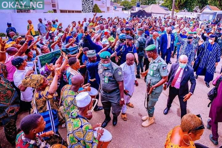 Osinbajo, who declared his ambition to run for President in the 2023 general election, was received by a crowd of supporters, while he was accompanied by the governor of Ogun State, Dapo Abiodun.