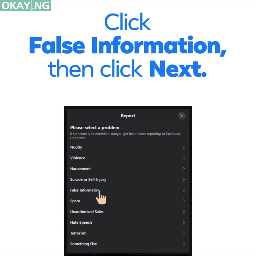 If you’ve done your research about a news story and you’ve found it to be false, don’t share it. Report it to Facebook. Just like Anita explained at the end of her video, go to the top of the post and click the three dots. Select the ‘report post’ option, click ‘False Information’, click ‘Next, and click ‘Done’.