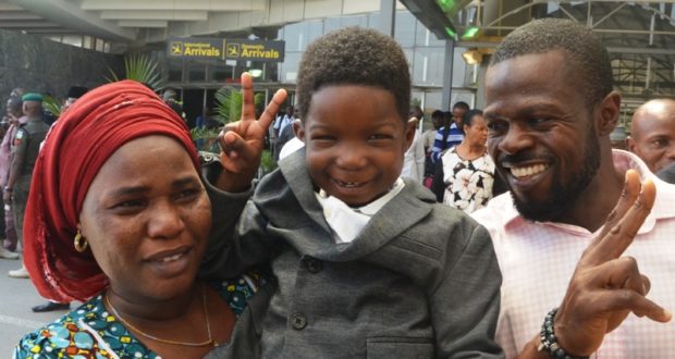 Child victim of Boko Haram insurgency Ali Ahmadu, who had travelled to Dubai after suffering a spinal cord injury, has returned to the country.