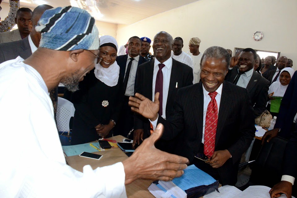 Governor Rauf Aregbesola of Osun State and the Vice Presidential candidate of the All Progressives Congress, Prof. Yemi Osinbajo appeared before the Election Petitions Tribunal hearing matters arising from the August 9 governorship election in the state, after Iyiola Omisore of PDP filed a lawsuit challenging Aregbesola’s victory. There were more armed security agents around the court premises than usually to make sure nothing goes out of hand. The road in front of the court was closed and commercial vehicles were totally restricted while private vehicles with verifiable missions around the area, were only allowed to move on the road. Below is how Punch reports the outcome of the tribunal.