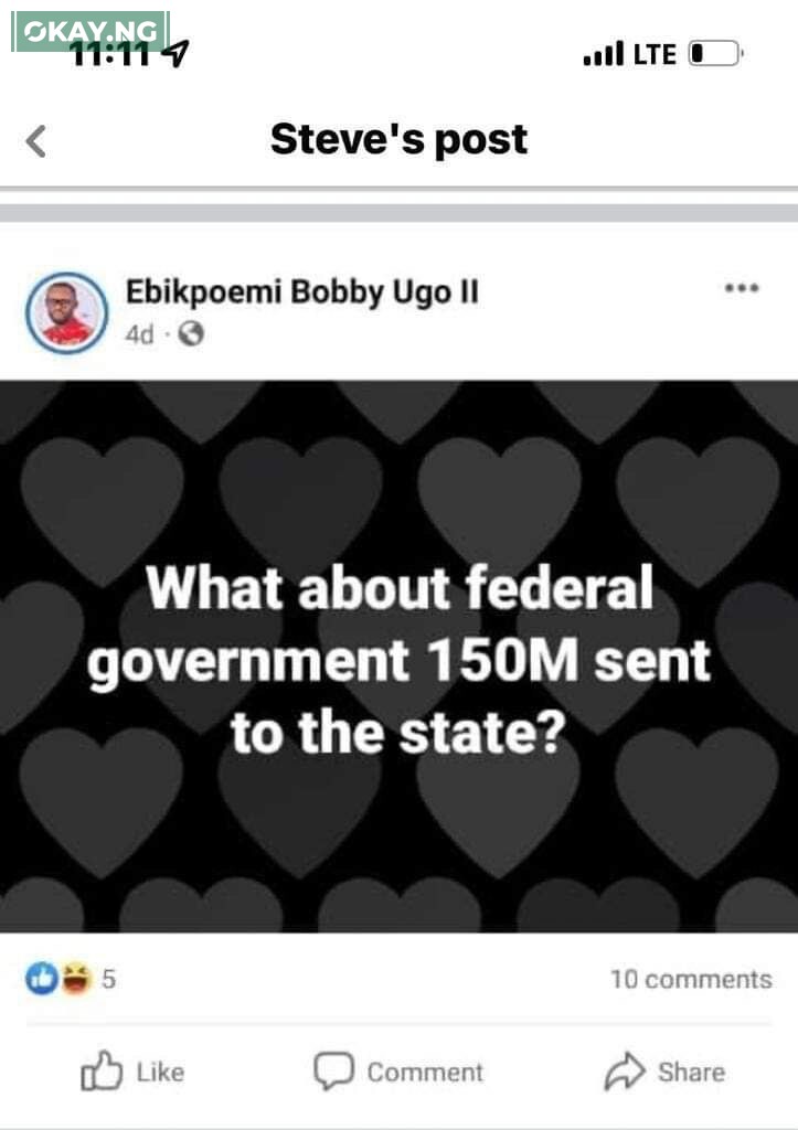 (2)​We have been reliably informed that, following a compliant by Gov. Douye Diri of Bayelsa State to the Police, Mr. Ugo was arrested by the Bayelsa State Police Command on the 18th of October, 2022 for making two Facebook posts as follows: