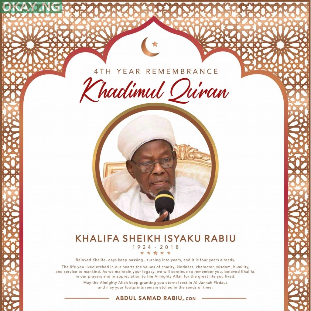 Abdul Samad in a statement signed by himself remembered Khalifa for the values of charity, kindness, character, wisdom, humility, and service to mankind during his lifetime.