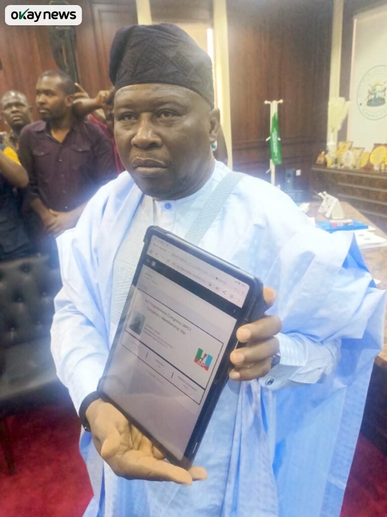 The governor was also seen publicly displaying the membership card of the All Progressives Congress, symbolically confirming his move to the ruling party.