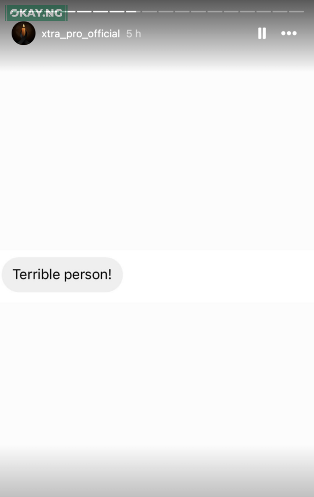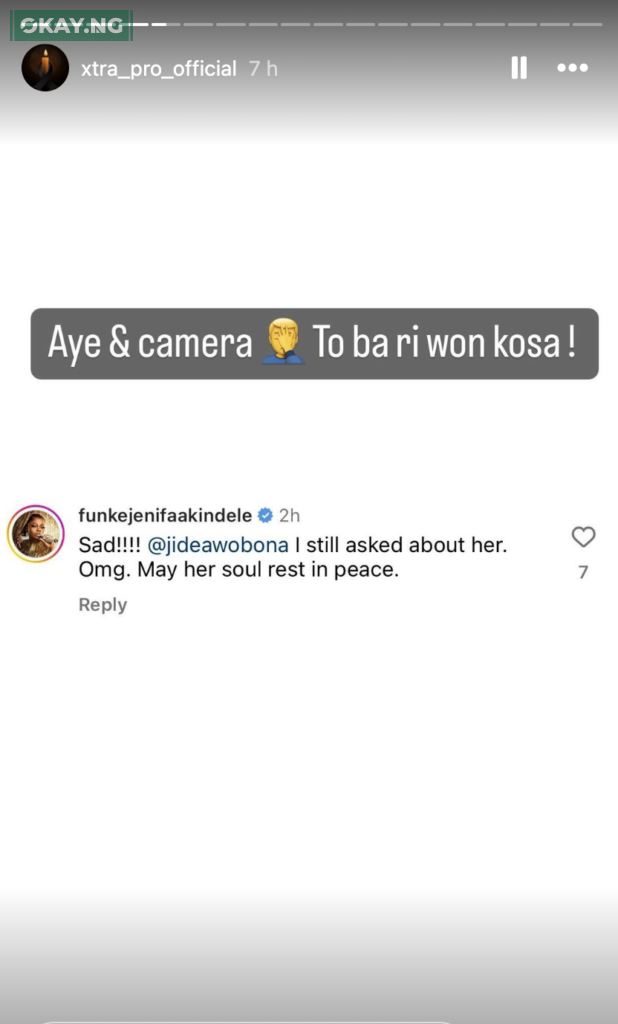 In a series of Instagram stories, Adeola shared screenshots of Akindele’s condolence message and accused her of only showing up for the camera. He went on to advise people to steer clear of individuals like her.