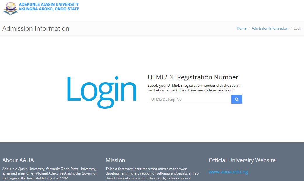 The management of Adekunle Ajasin University Akungba (AAUA) wishes to inform members of the general public and candidates that it has released the list of admitted candidates for 2017/2018 academic session. Candidates can proceed to the school’s portal to check their admission status.