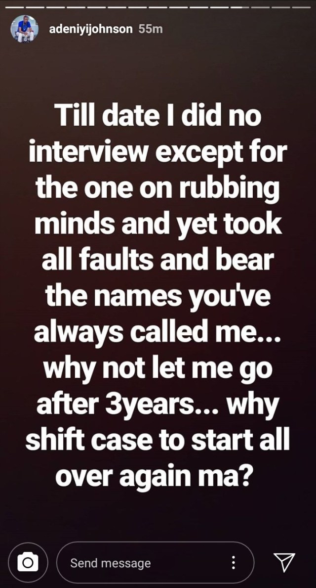 Adeniyi took to his Instagram story to plead with her so he can move on with his Life.