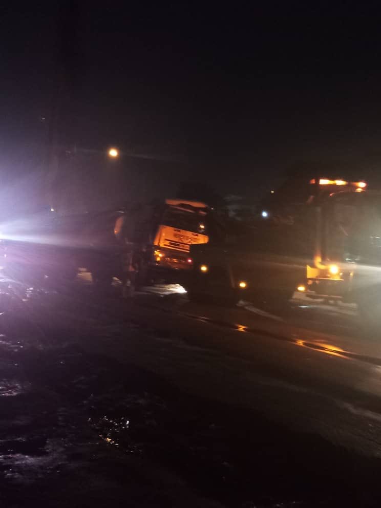 “The Fallen Tanker is loaded with diesel, all emergency responders at the scene of the incident. Road cordoned off for immediate recovery. Motorists are implored ti be patient on this one.