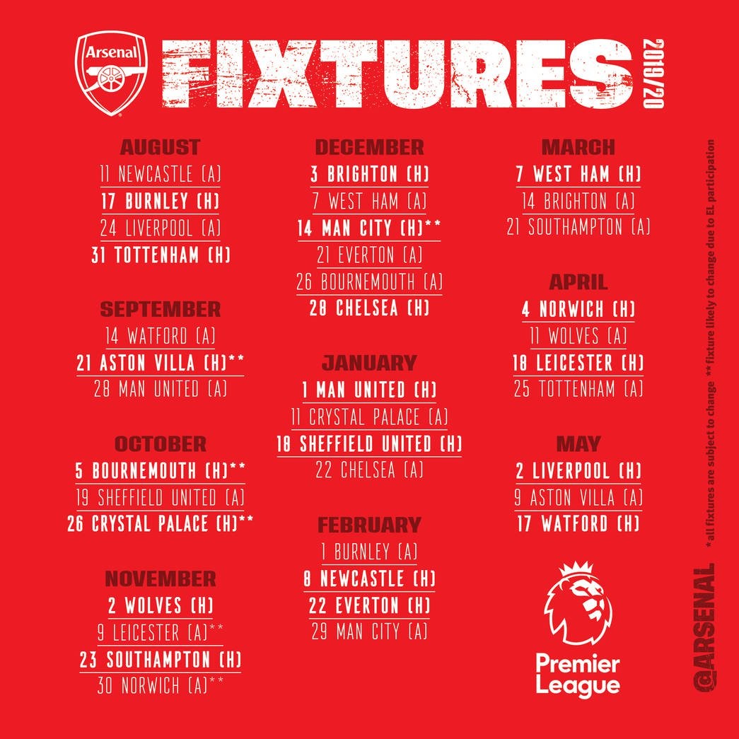 Arsenal will kick start their 2019/2020 Premier League campaign by play against Newcastle at St. James’ Park on 11th of August 2019.