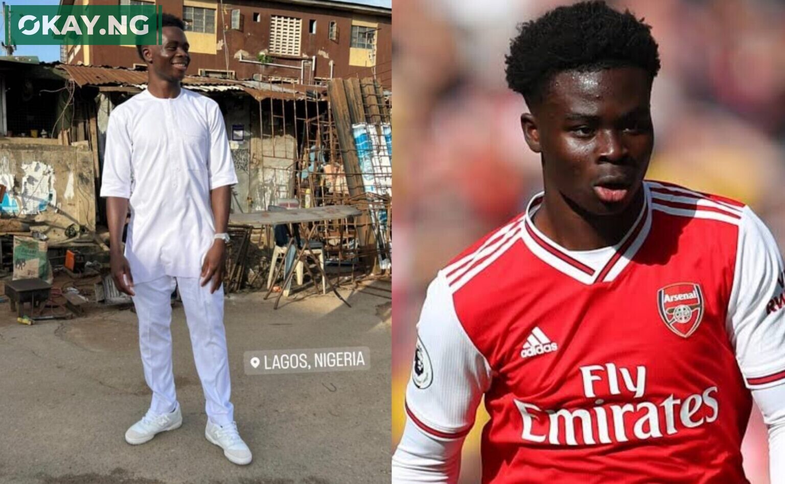 Arsenal star, Bukayo Saka, arrived in Nigeria on Thursday for the season’s break.