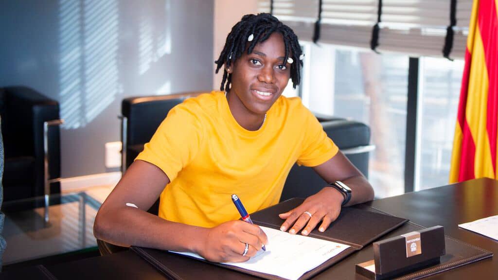 The Nigerian Super Falcons striker expressed her joy about the move as she said “Delighted to join @FCBfemeni on loan. 2019 let’s go.” on Twitter.