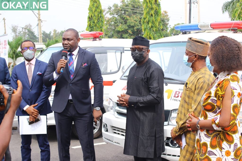 Presenting the ambulances to Dr. Kayode Fayemi, Governor of Ekiti State at the Government House in Ado-Ekiti, Ubon Udoh, Managing Director, ASR Africa said the donation is aimed at supporting emergency health response within Ekiti State in line with the goal of ASR Africa. He further added that Ekiti State is the 19th beneficiary state and enjoined the state government to put it to good use. Udoh also stated that the ambulance donations were part of efforts by the founder of ASR Africa, Abdul Samad Rabiu, to give back to the society in the areas of Education, Health and Social Development in Africa..
