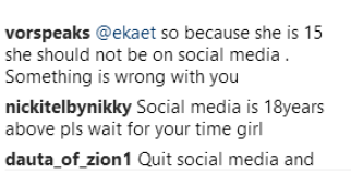 The teenager also added she did not understand the constant hate thrown at her mother. Some of those comments on her page.