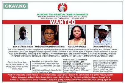 EFCC Declares Ex-CBN Governor Emefiele’s Wife, Others Wanted for Alleged Money Laundering