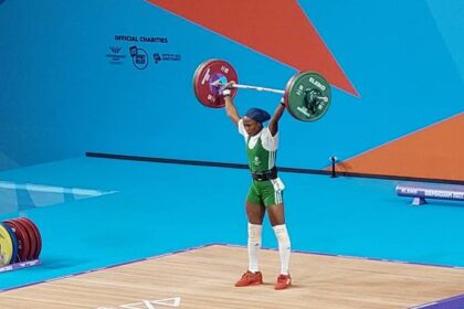Weightlifter, Adijat Adenike Olarinonye, has won the first gold medal for Nigeria…