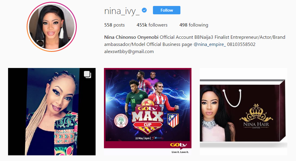 #BBNaija 2018 finalist, Nina Verified On Instagram