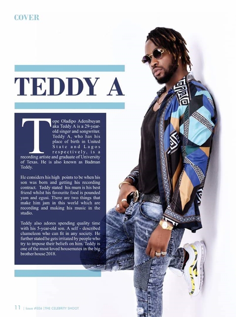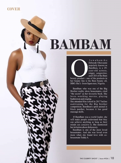 Former Big Brother Naija 2018 housemates, Tope Adenibuyan, known as Teddy-A, and his sweetheart, Oluwabamike Olawunmi, known as BamBam, have graced the cover of Celebrity Shoot Magazine which is owned by fashion designer and stylist, Abbyke Domina.