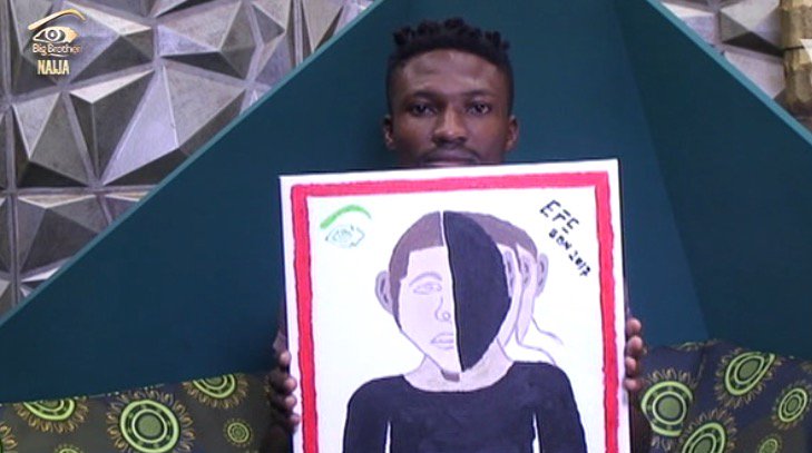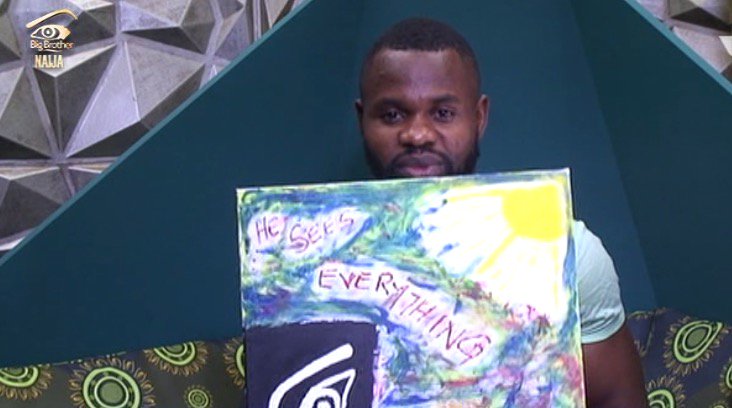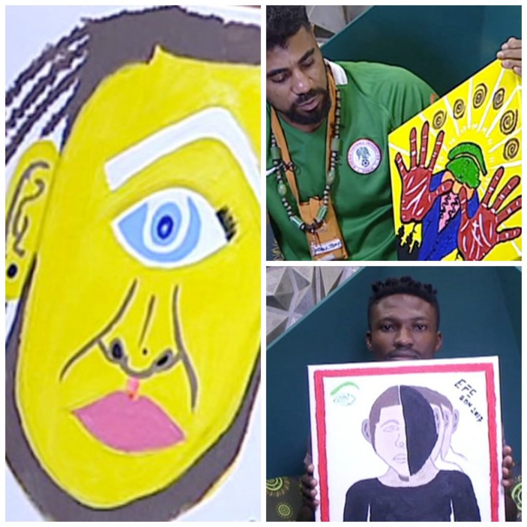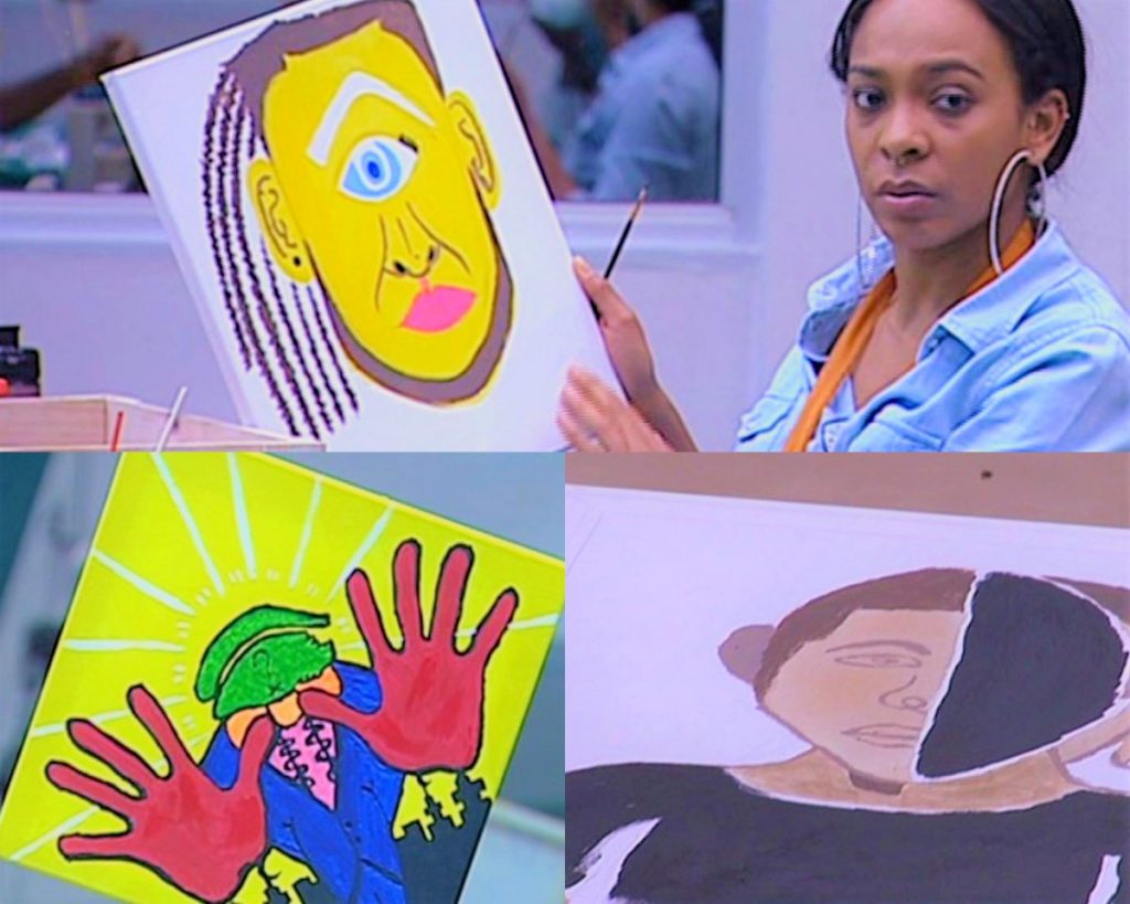 For today’s challenge the Housemates got asked to visually represent Big Brother’s omnipotent presence in a portrait of him. They were given paint, brushes and a blank canvas then tasked with letting their imaginations “run wild!”