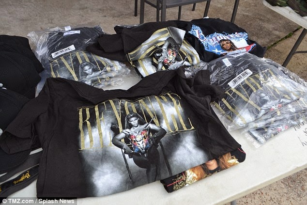 He sold several posters, DVDs, tour T-shirts and of Monday, Mathew was still selling bins of old things including ‘a giant Beyonce poster for $200, old tour books for $20 and various pieces of House of Dereon clothing,’