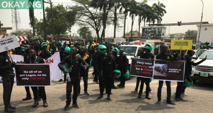 As the ban set to kick-off tomorrow (Saturday), the motorcyclists stormed the State governor’s office in Alausa, Ikeja, on Friday, expressing their displeasure with placards that reads “Our jobs matter,” while another read, “Regulate us, not kill us”.