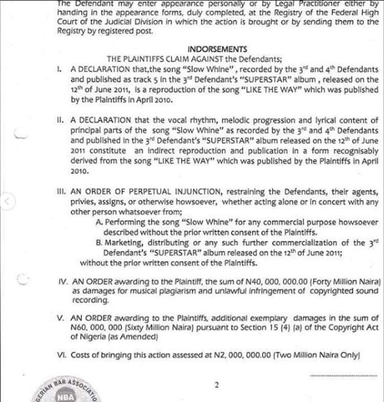 Singer of defunct music group Plantashun Boiz Blackface drags Banky W and Wizkid to court for alleged copyright infringement of his song.