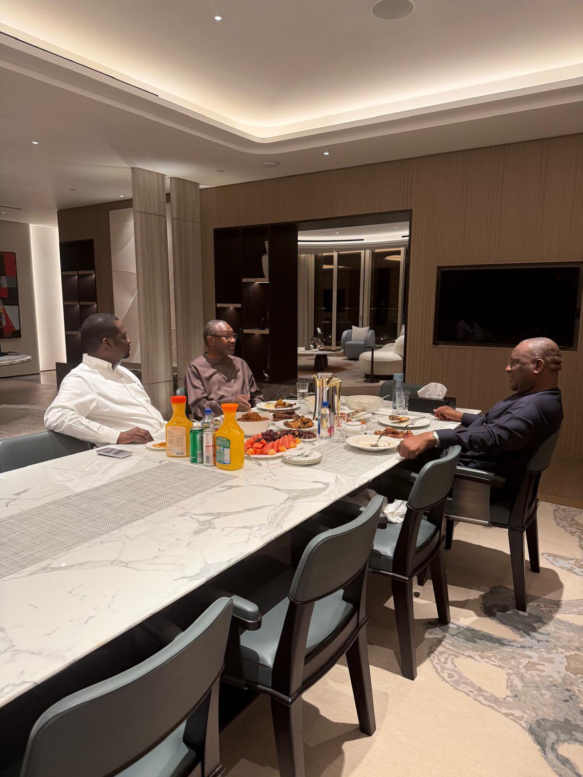 Dubai, UAE – Nigerian billionaire and Chairman of BUA Group, Abdul Samad Rabiu, recently hosted fellow business magnate Femi Otedola for a private dinner in Dubai, United Arab Emirates. The meeting between the two prominent industrialists took place as an Iftar meal to break the fast on the third day of the Islamic holy month of Ramadan.