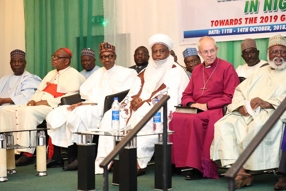 Justin Welby, the Archbishop of Canterbury in England, was present at the event and delivered a keynote. John Onaiyekan, leader of the Catholic Church in Nigeria, and Sa’ad Abubakar, Sultan of Sokoto, were also present, according to a dispatch from the State House Saturday afternoon.