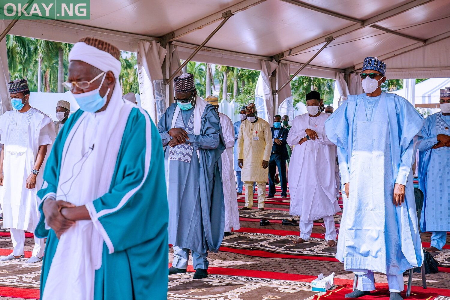 President Muhammadu Buhari on Friday observed Eid El-Kabir prayers with his family at the State House in Abuja.
