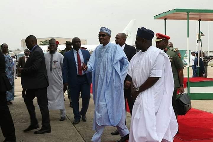 Okay Nigeria reports that the president was received by Gov. Akinwunmi Ambode of Lagos State, Gov. Abiola Ajimobi of Oyo State, Gov. Rotimi Akeredolu of Ondo State and Deputy Governor of Edo, Mr Phillip Shuaibu.