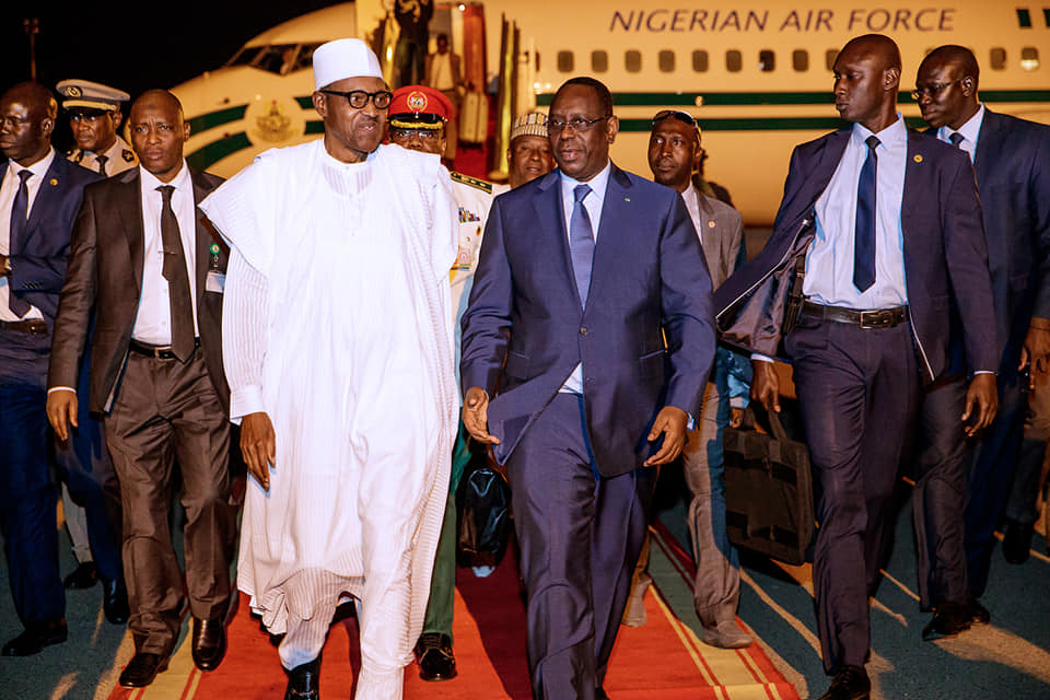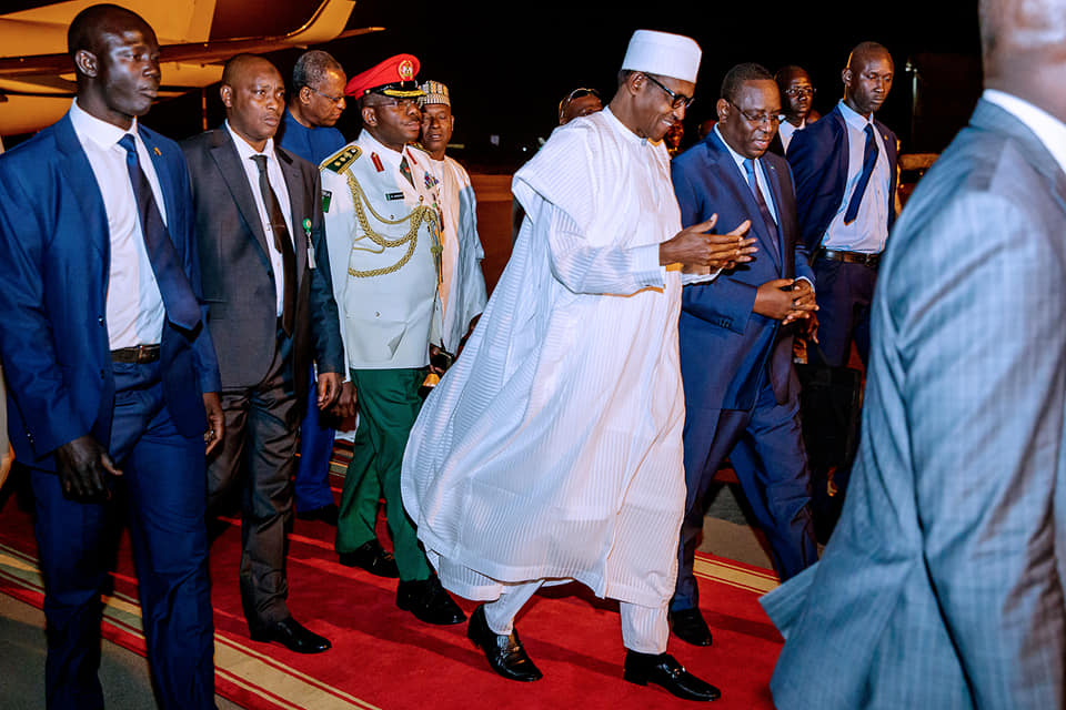 President Muhammadu Buhari has arrived in Senegal ahead of inauguration of Senegalese President, Macky Sall, following his re-election for a second term.