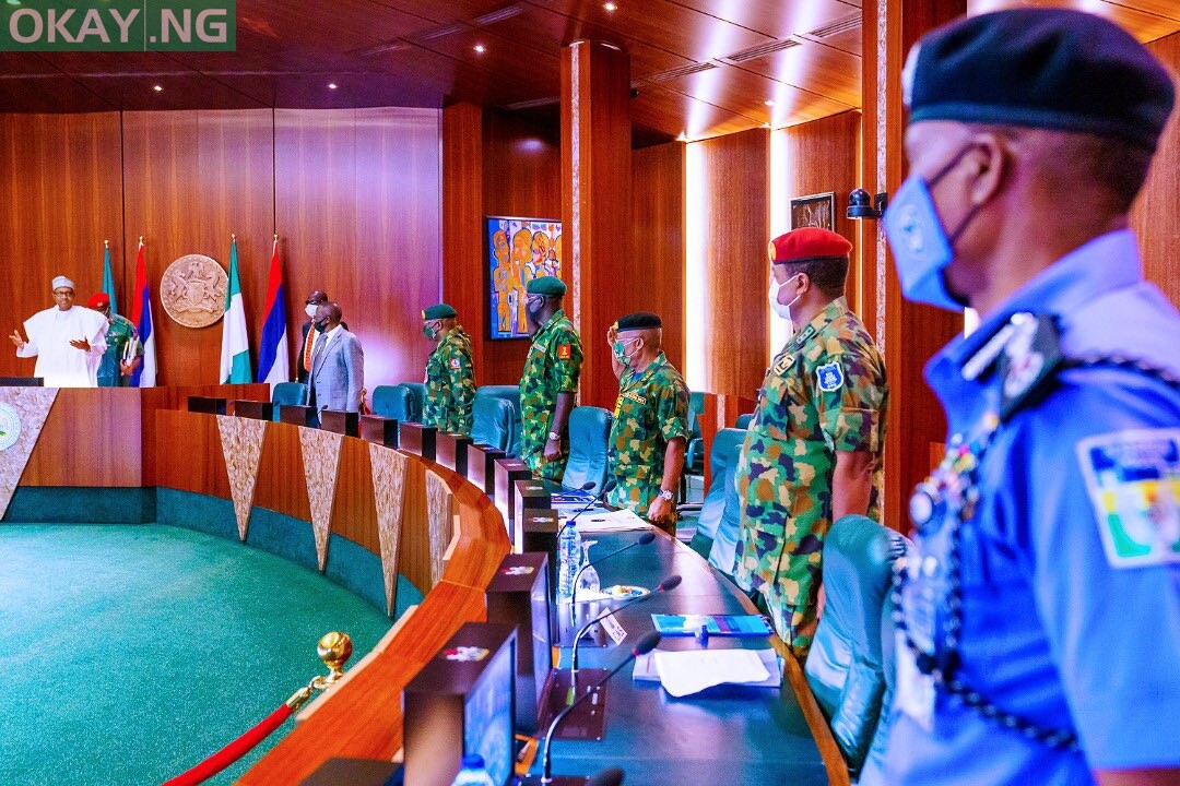 Ministers in attendance include those of Defence, Bashir Magashi, Interior, Rauf Aregbesola, Police Affairs, Mohammad Dingyadi and Foreign Affairs, Geoffrey Onyeama.