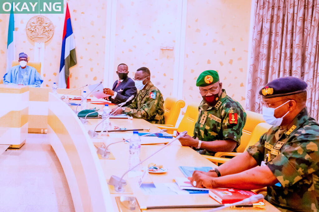 President Muhammadu Buhari on Thursday met with the service chiefs at the presidential villa in Abuja, the federal capital territory.