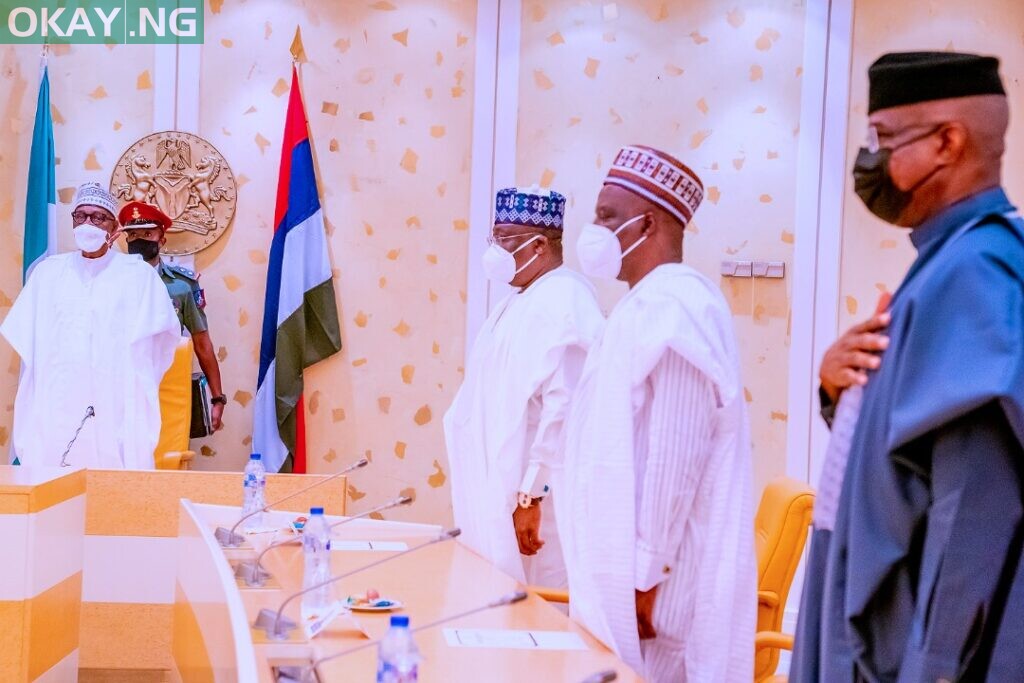 President Muhammadu Buhari on Wednesday met with the leadership of the national assembly at the Presidential Villa, Abuja.