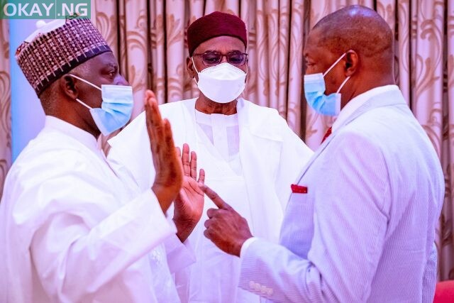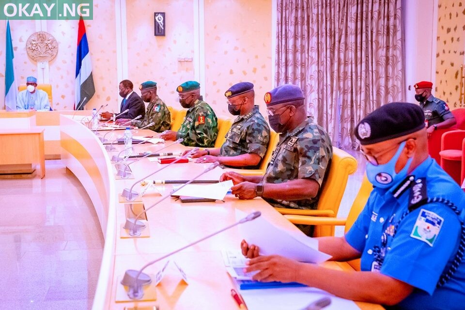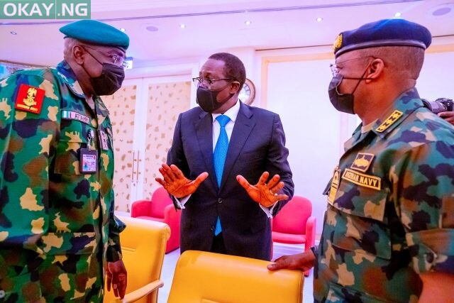 Also present is the Chief of Defence Staff, General Lucky Irabor; Chief of Army Staff; Lieutenant-General Ibrahim Attahiru; Chief of Naval Staff, Vice Admiral Awwal Zubairu; Chief of Air Staff, Air Marshal Isiaka Amoo and the acting Inspector General of Police, Usman Baba.
