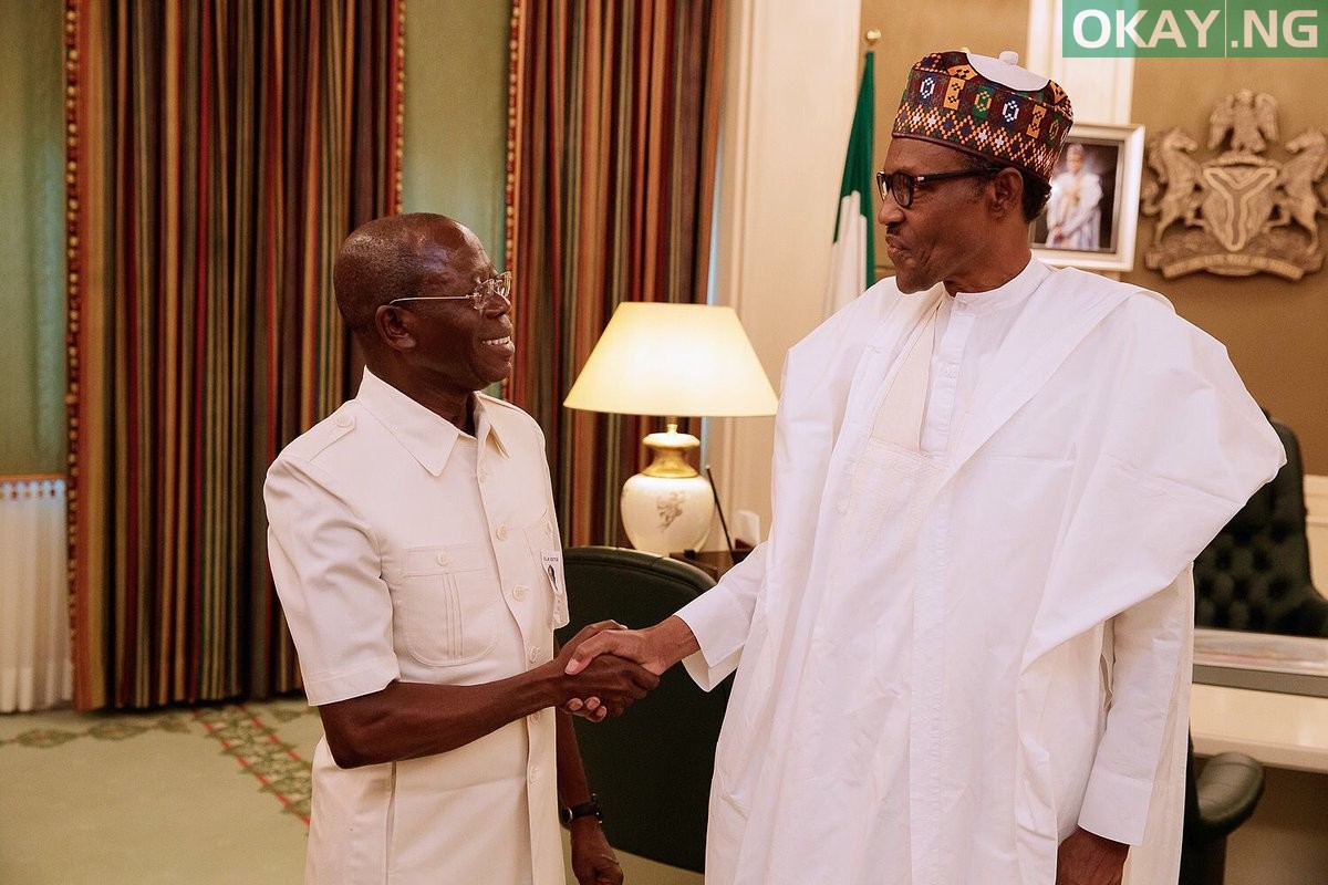 President Muhammadu Buhari on Monday received Chairman of the All Progressives Congress (APC), Adams Oshiomhole.