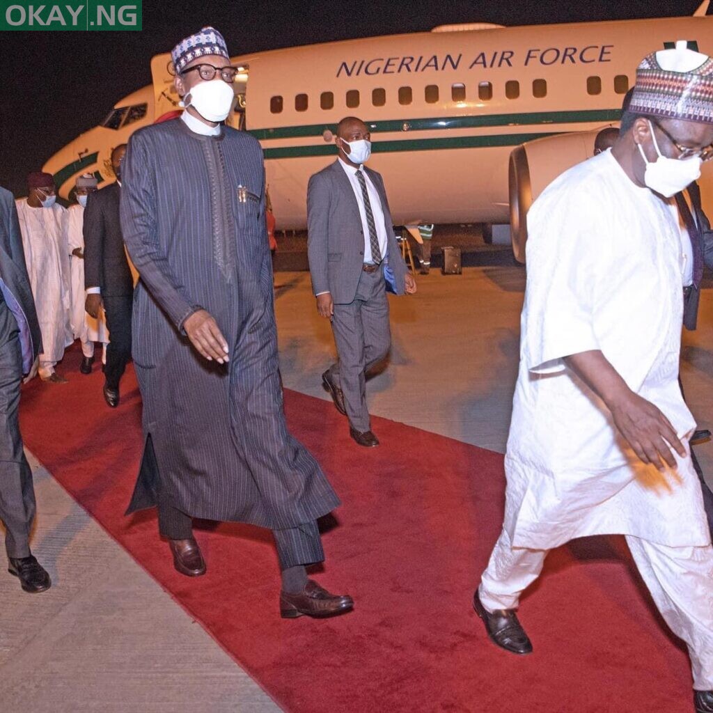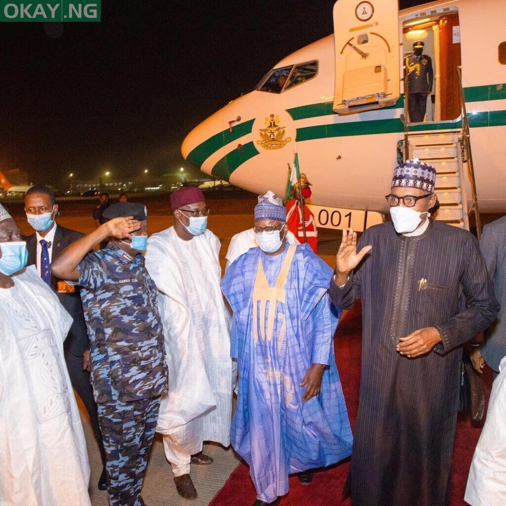 NAN reports that the presidential aircraft carrying the president landed at the Presidential Wing of the Nnamdi Azikiwe International Airport, Abuja, at about 7.09 p.m.