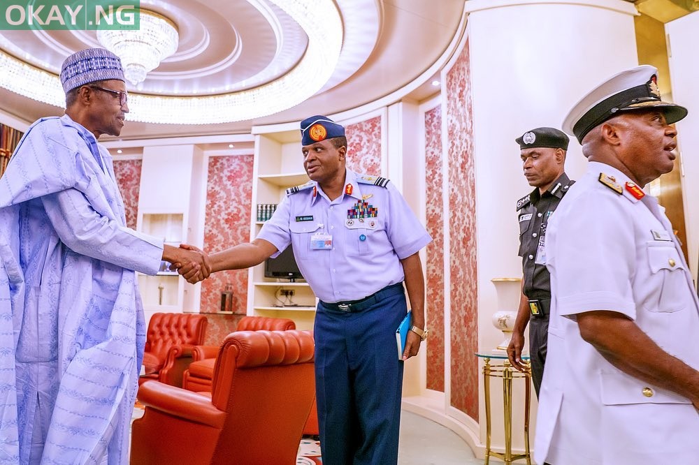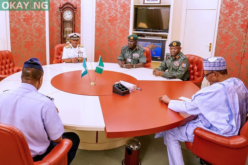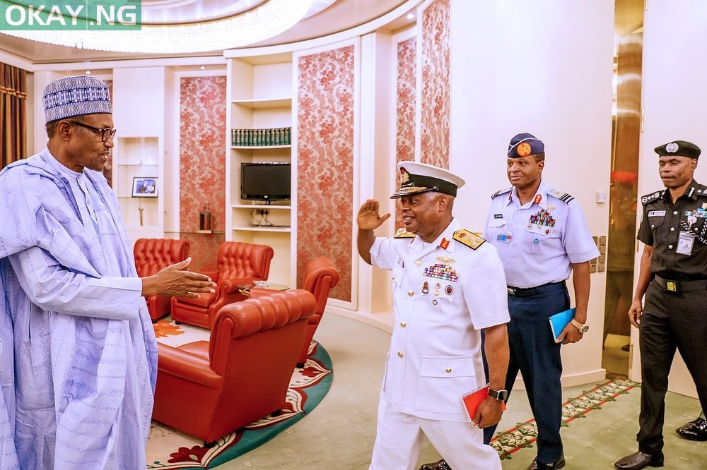 Those in attendance were the Chief of Defence Staff, General Gabriel Olonisakin; Chief of Army Staff, Lt. – Gen Tukur Buratai; Chief of Air Staff, Air Marshall Sadique Abubakar; the Chief of Naval Staff, Vice Admiral Ibok Ekwe Ibas.