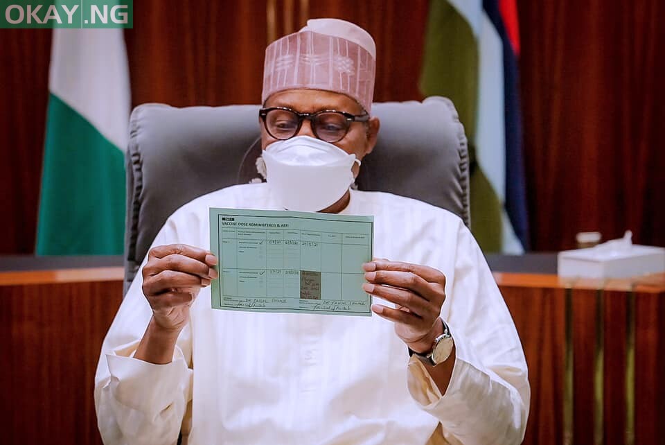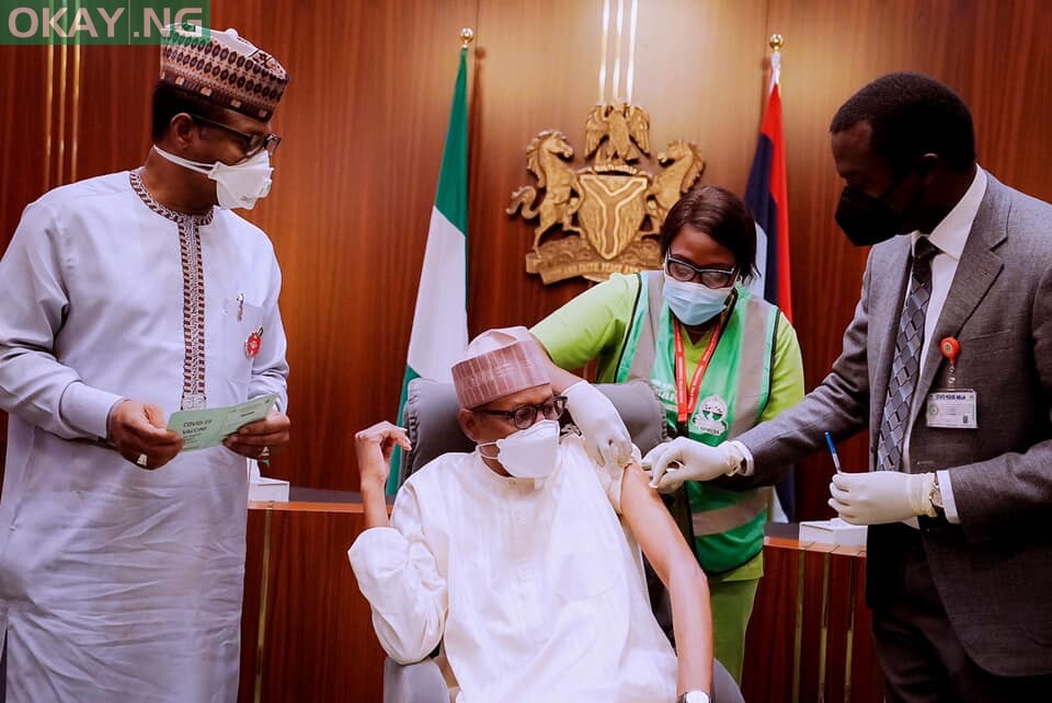 Okay.ng understands that the Pfizer BioNTech vaccine was administered to the president by his personal physician, Suhayb Rafndadi at the Presidential Villa, Abuja.