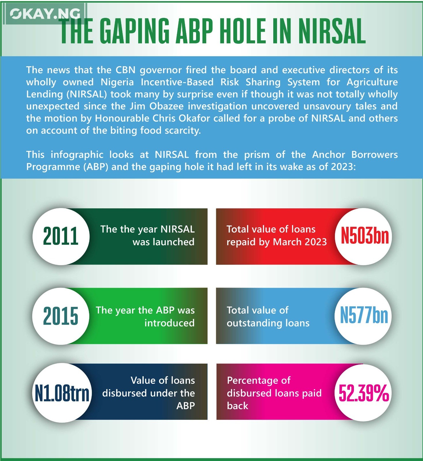 This aphorism is important in considering the news from the Central Bank of Nigeria (CBN) announcing the sack of the board and executive directors of the Nigeria Incentive-Based Risk Sharing System for Agriculture Lending (NIRSAL). Those affected include the Chief Executive Officer (CEO) and Managing Director (MD), Abbas Umar Masanawa; Kennedy Nwaruh, Executive Director, Operations, and Olatunde Akande, Executive Director, Technical.