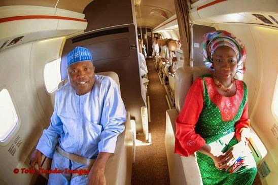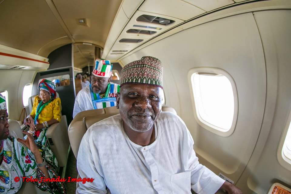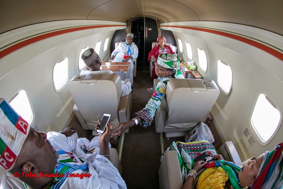 APC presidential candidate Gen Buhari and his team in their private jet while out and about their campaign business. See More Photos below