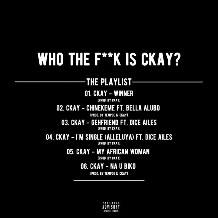 Chocolate City singer and producer – CKay has been trending on twitter for the past 24 hours and he has decided to make the best use of the situation by putting out an EP/Playlist entitled ” Who The F**K Is CKay?”