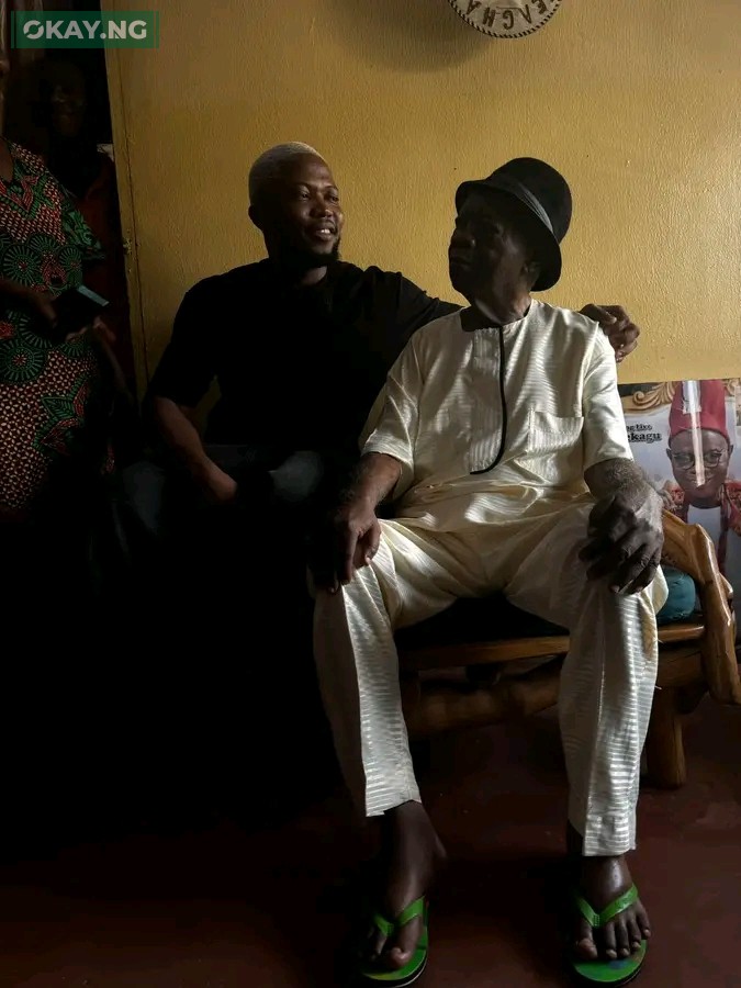 Comedian Chukwuebuka Emmanuel Amuzie, popularly known as Brain Jotter, has visited highlife legend Mike Ejeagha at his home following the massive success of a viral dance video set to Ejeagha’s 1983 hit song, “Ka Esi Le Onye Isi Oche.”