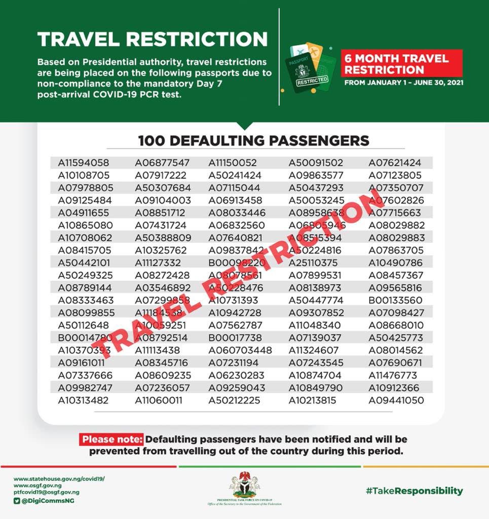 The Federal Government has released details of 100 air travellers who violated COVID-19 protocols.