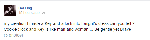 48-year-old Chinese-born actress Bai Ling rocked this risque outfit for The Key screening in Beverly Hills, California last Friday. Outfit was designed by her and after the premiere, she took to her Facebook page to gush about it.. See more photos after the jump.