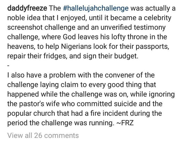 Cool FM OAP, Daddy Freeze, has slammed Gospel singer Nathaniel Bassey; convener of the ‘Hallelujah Challenge’ programme which takes places on social media by midnight.
