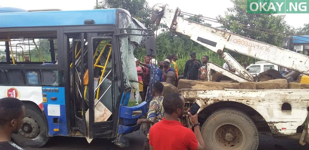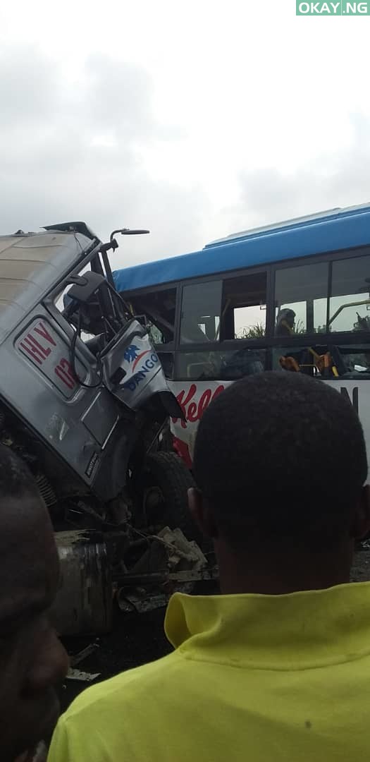 A trailer belonging to Dangote on Tuesday crashed into a BRT bus along along Ikorodu road in Lagos.