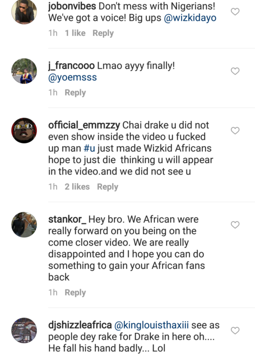 Anyways, after the release of the video, Drake congratulated Wizkid on Instagram, and that was just the perfect opportunity Nigerians needed to lash out.