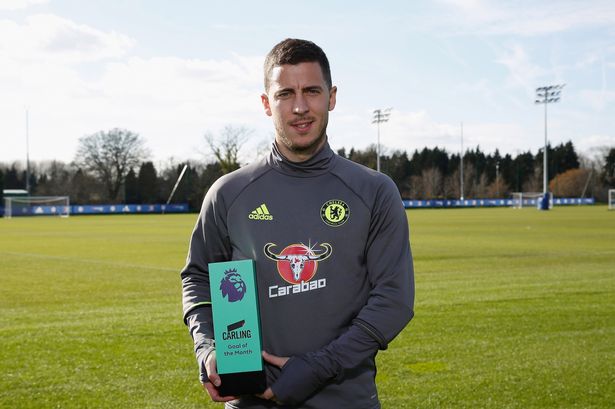 Eden Hazard has won the Premier League Goal of the Month award for February for his strike in Chelsea’s 3-1 Premier League win against Arsenal.