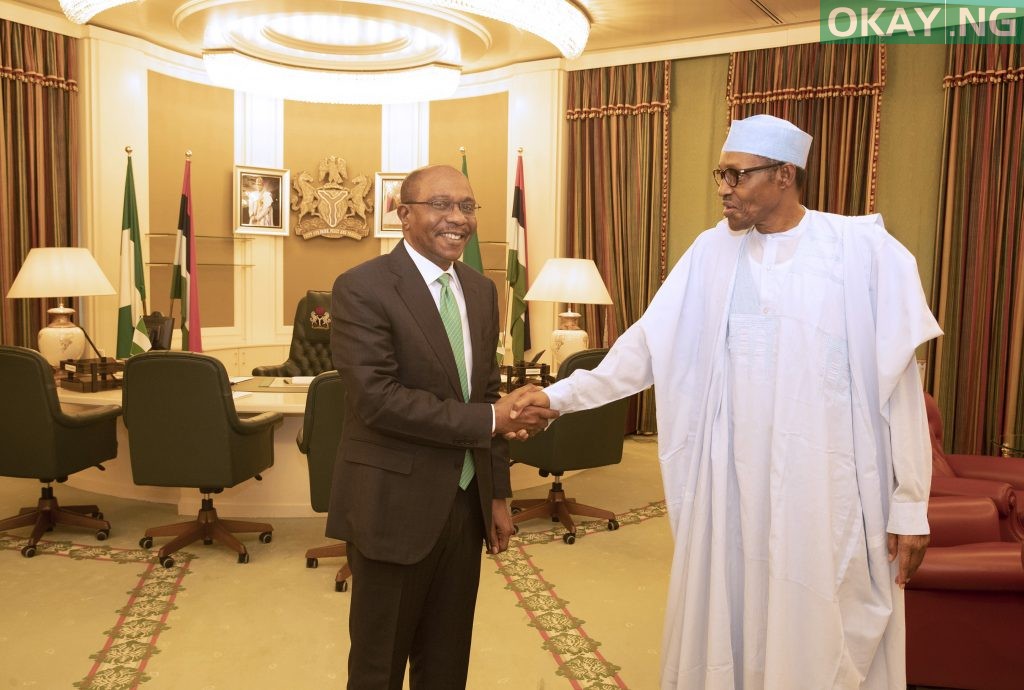 President Muhammadu Buhari on Monday morning received Godwin Emefiele, governor of the Central Bank of Nigeria (CBN), at his office at the State House.